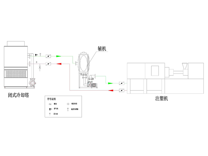 模溫機和模具接入閉式冷卻塔系統(tǒng),不堵塞,不結(jié)垢。
