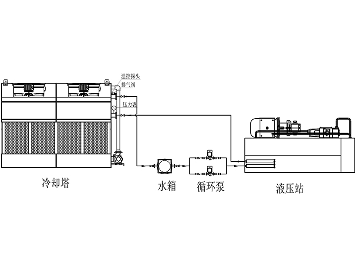 注塑機(jī)冷卻采用恒壓變頻閉式冷卻塔系統(tǒng)。