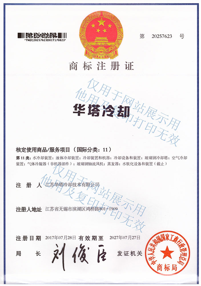 江蘇華塔冷卻商標(biāo)注冊(cè)證